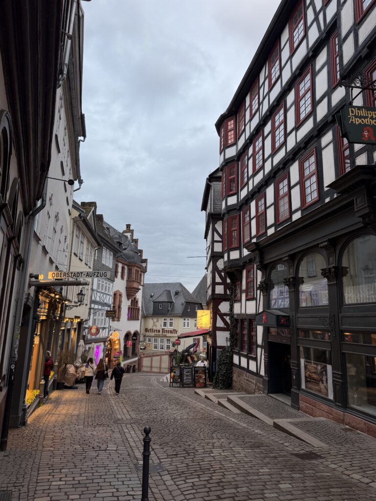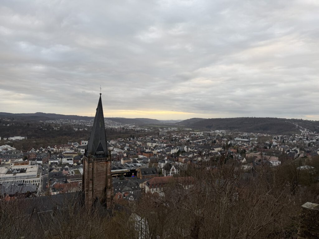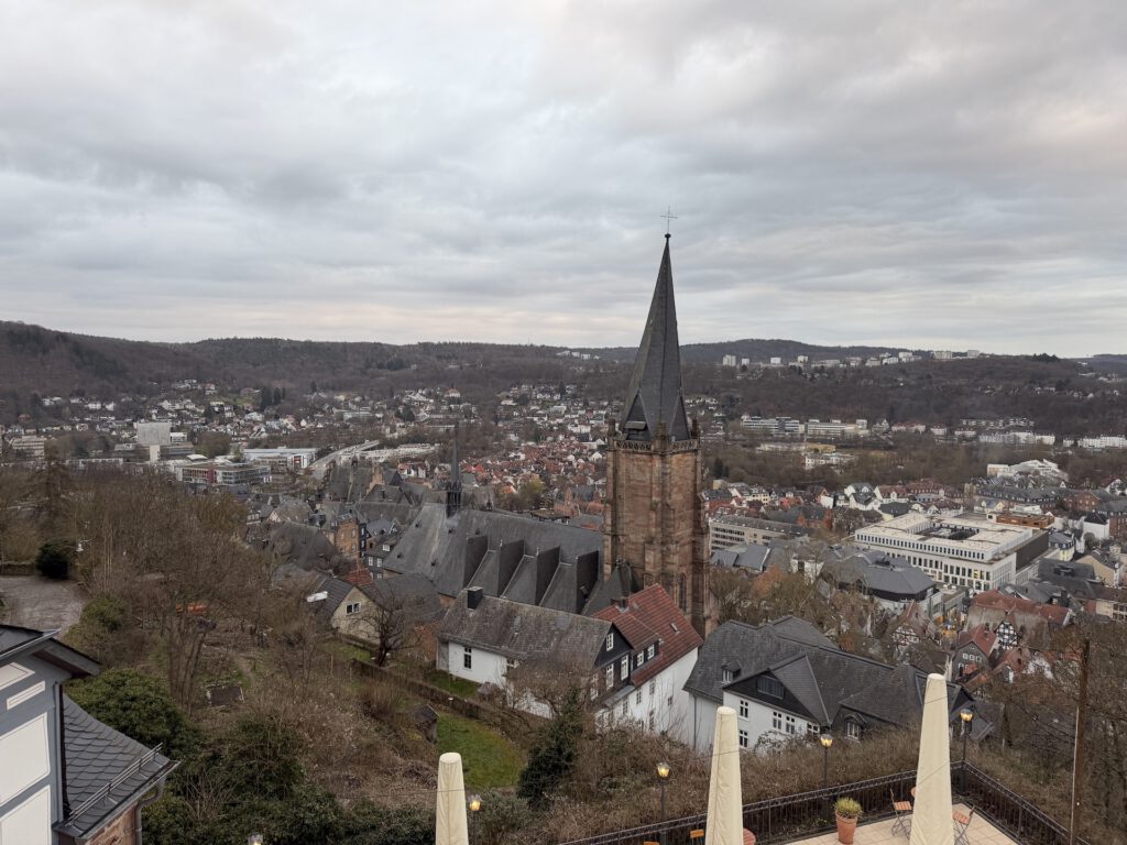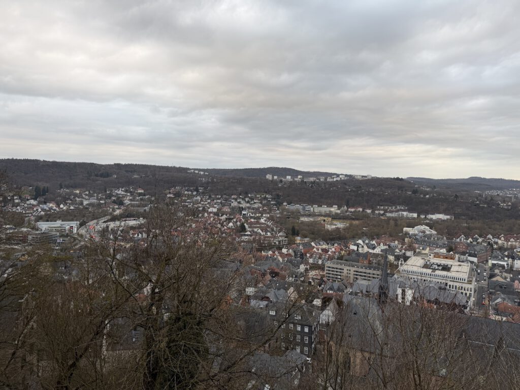 Morgens hatte ich zu tun und der Nachmittag sah nach Regen aus. Also schnappte ich mir ein Ziel aus meiner Liste der „20 Orte Hessens, die du sehen musst…“, das nicht zu weit entfernt war, und landete schließlich in Marburg. 50 Kilometer sollten am Nachmittag noch gut machbar sein und falls der Himmel überraschend aufmachen würde, wäre ich nicht allzu weit von zu Hause entfernt.