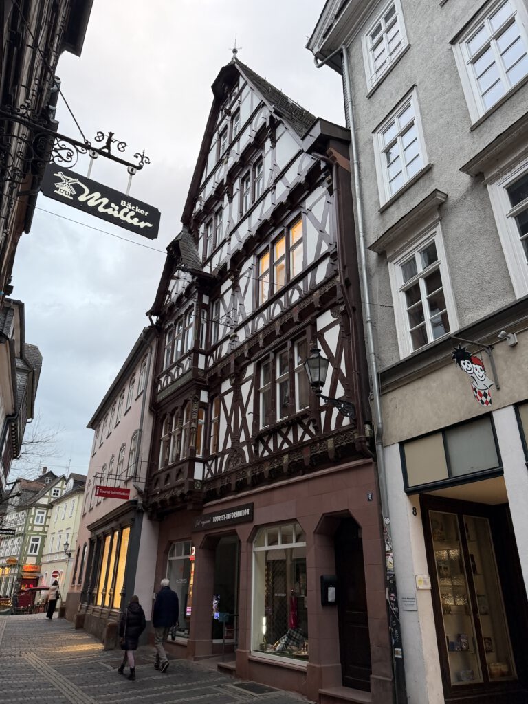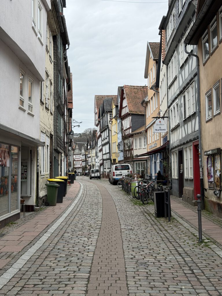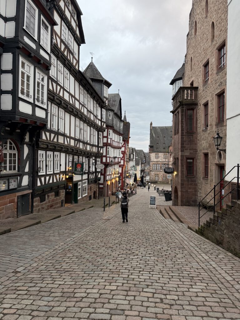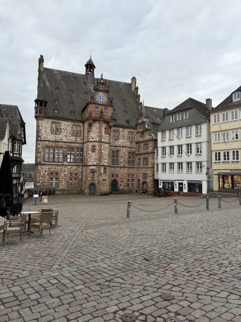 Morgens hatte ich zu tun und der Nachmittag sah nach Regen aus. Also schnappte ich mir ein Ziel aus meiner Liste der „20 Orte Hessens, die du sehen musst…“, das nicht zu weit entfernt war, und landete schließlich in Marburg. 50 Kilometer sollten am Nachmittag noch gut machbar sein und falls der Himmel überraschend aufmachen würde, wäre ich nicht allzu weit von zu Hause entfernt.