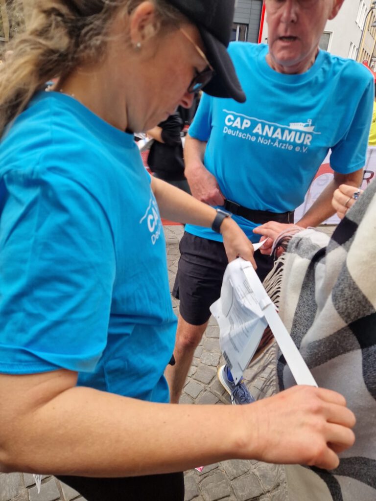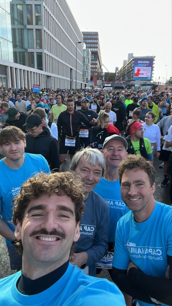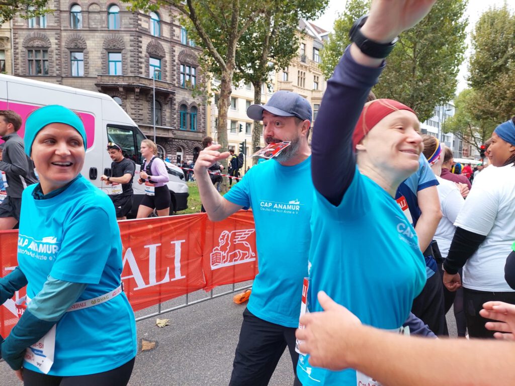Mit sechs Staffel-Teams, einem Marathon- und einem Halbmarathonläufer – insgesamt 26 Läufer! – war Cap Anamur mit seinen blauen Shirts vertreten.