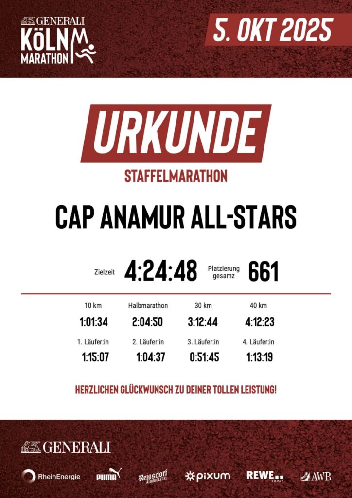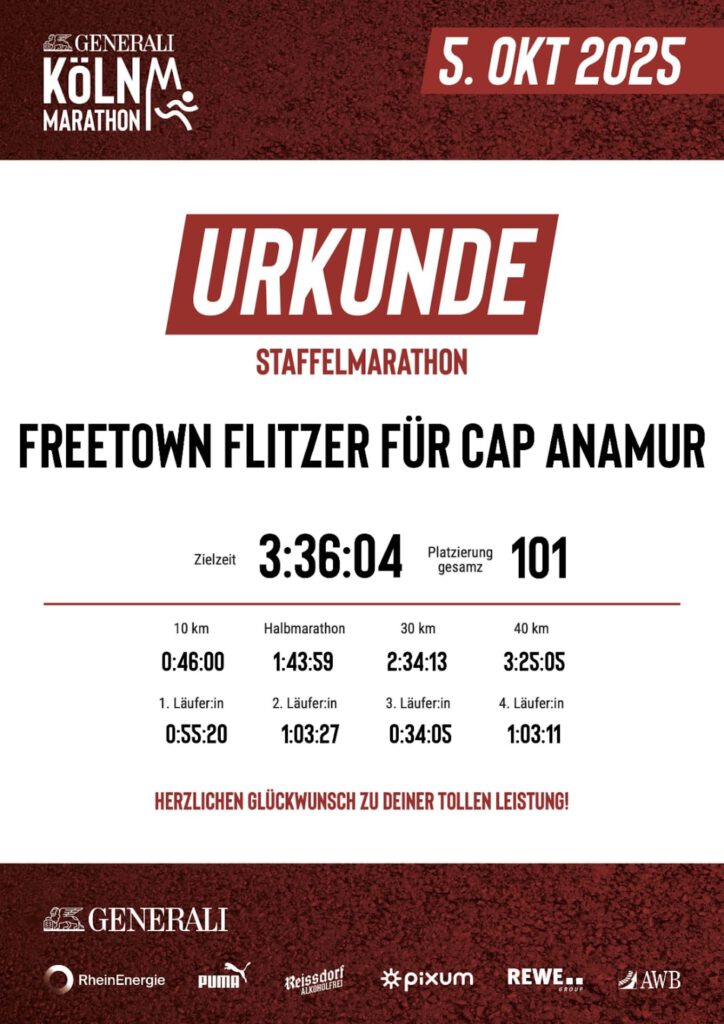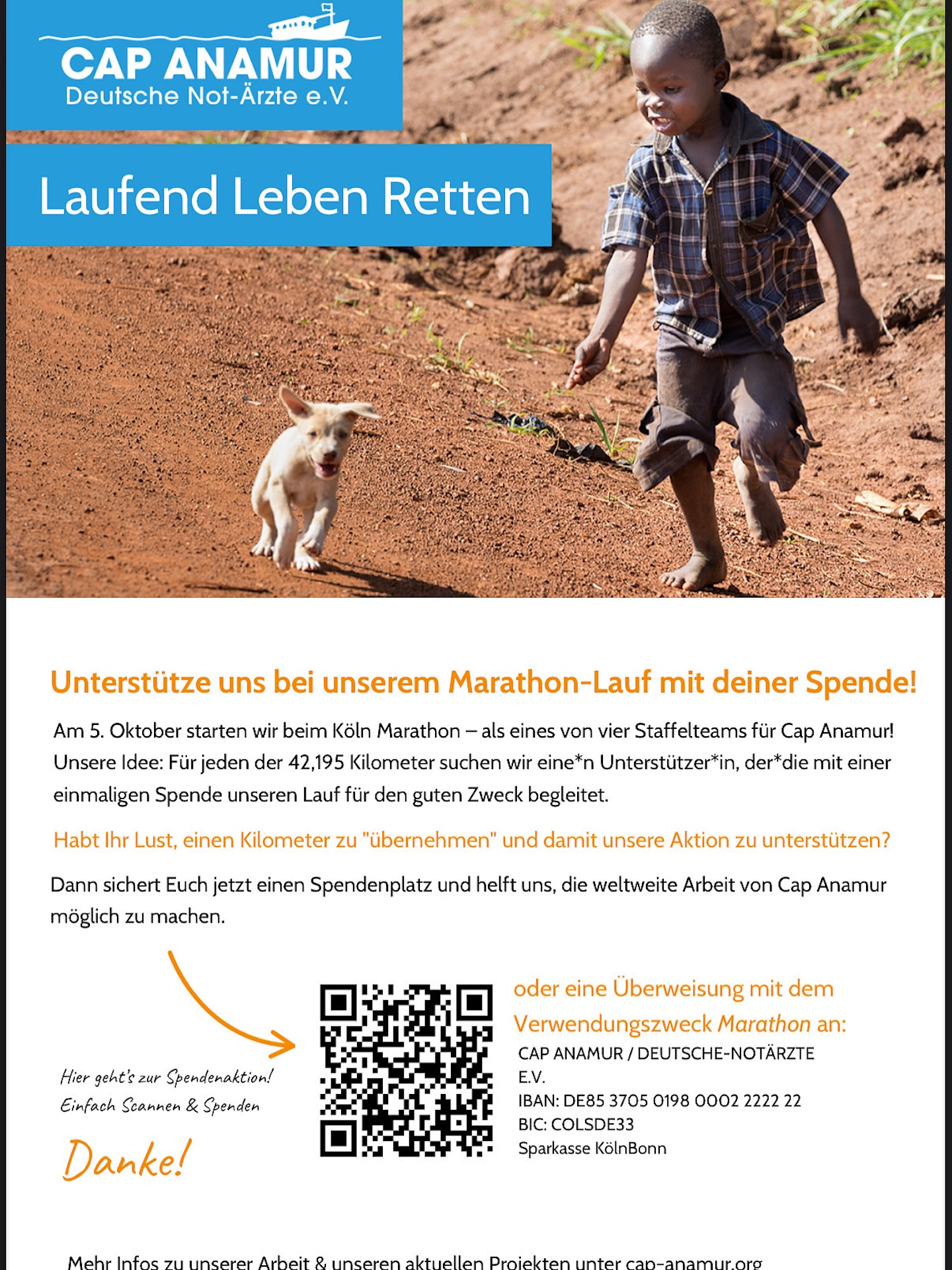 Doch dann kam die Anfrage von Cap Anamur, ob ich als ehemaliger Mitarbeiter bei dem Generali Köln Marathon im Staffelteam mitlaufen möchte. Ziel war es die Organisation zu präsentieren um Spenden zu generieren.