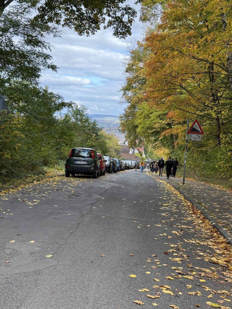 Mit dem Verlassen des Sportgeländes befand man sich bereits am Ortsrand von Zuffenhausen. Nach einer kurzen Ettappe im Wald befand man sich wieder hinter den letzten Häusern an einem Weinberg. Das es dort ordentlich aufwärts gehen könnte war zu befürchten.